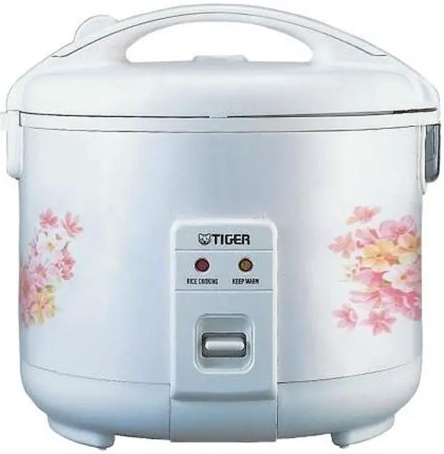 TIGER 4-cup Rice Cooker- Warmer. The sleek modern design blends in with any kitchen decor and the locking top seals in flavor and nutritional elements often lost with other cooking methods. A single control button cooks foods to perfection and then automatically switches to a warming mode until it s ready to be served. Tiger Electric Rice Cooker - Cooking fluffy delicious rice is as easy as pushing a button. The JNP-0720 4-cup Rice Cooker- Warmer by Tiger of Japan steams up to 8 cups of cooked rice to perfection then keeps it warm until serving time.