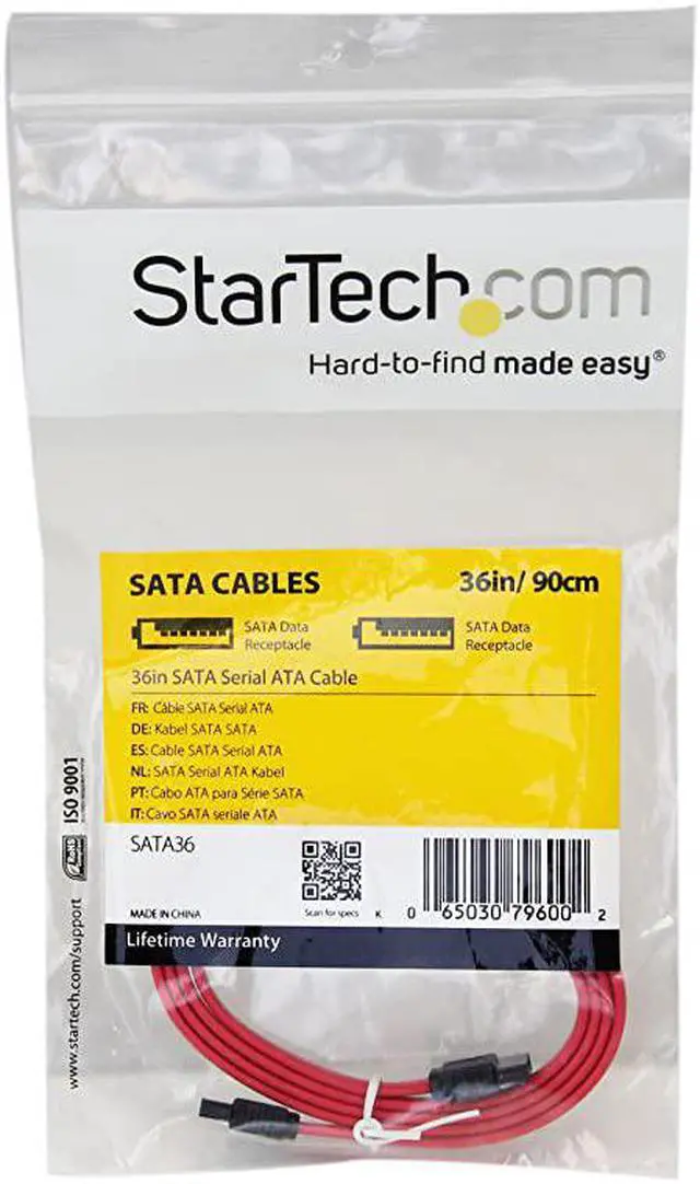 Style: Standard The SATA36 Serial ATA Cable features two 7-pin data receptacles and supports full SATA 3.0 bandwidth of up to 6Gbps when used with SATA 3.0 compliant drives. Featuring a low profile, yet durable construction, the flexible design improves airflow and reduces clutter in your computer case, helping to keep the case clean and cool. Constructed of only top quality materials and designed for optimum performance and reliability this 36" SATA cable is backed by our lifetime warranty.