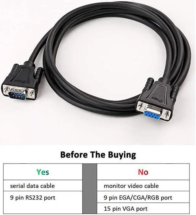 Size: 6ftNeed a three wire null modem serial extension cable (TX, RX and GND) that is long enough to control your legacy equipment, so you can program a outdoor digital sign from the comfort of indoor office? This 6ft 9 pin male to female serial adapter (cross wired between TX and RX line) enables you to extend original serial to serial cord and move the device to a far corner where you need it to reach. 9 pin serial cable male to female is with gold plated pins for superior corrosion resistance ensuring a solid connection.