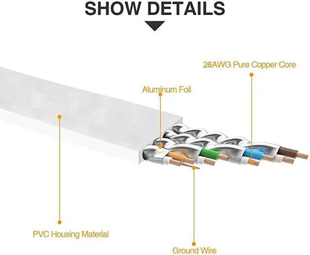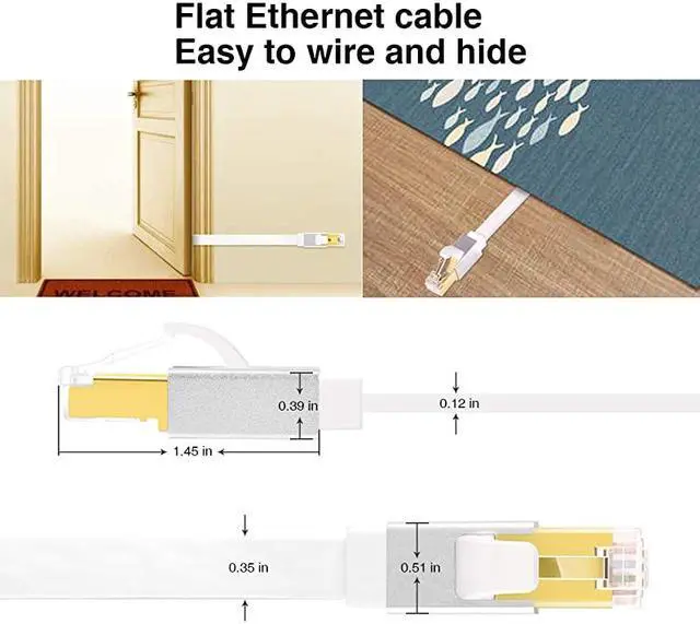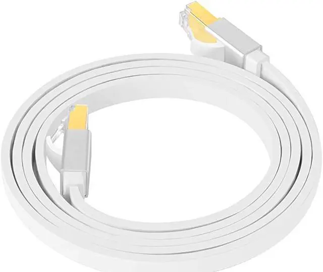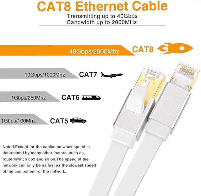 Color: 2 pack new design CAT8 10 foot Ethernet Cable works with high fidelity & maximum speed of data transmission, is your best choice for smart home & office. Introduction - CAT 8 faster than CAT 7, transmitting up to 40Gbps and bandwidth up to 2000MHz - Pure copper cable core with lower resistance and higher transfer speed - Upgraded UV-resistant PVC Housing Material, protects the copper cable core from damage, perfect for outdoor and indoor use - Full Cover RJ45 Connector and aluminum protective shell, ensuring high speed point-to-point signal transmission - 4 pairs shielded twisted pair wrapped by aluminum foil, shielded interference, ensuring fast and stable internet connecting - Flat CAT8 Ethernet cable, support power over Ethernet (POE), compatible with cat5, cat5e, cat6, cat6a and cat7 cable