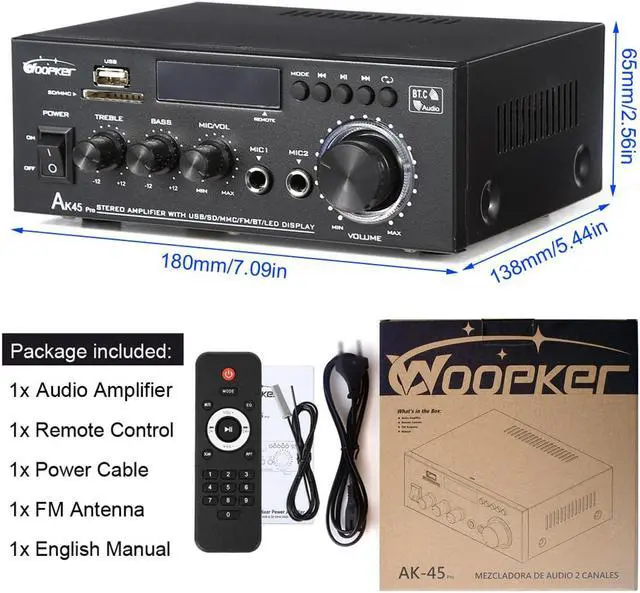 This Mini Bluetooth Amplifier boasts roaring bass, crisp highs and an outstanding richness that most amps can only hint at. Perfect for your family dance, birthday party, and home karaoke etc.