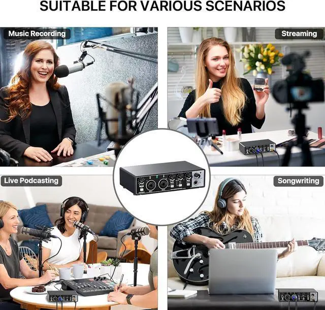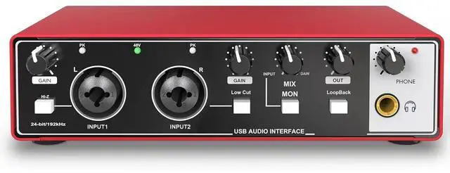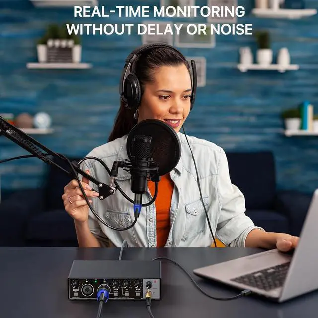 1.Studio-Quality Sound Without Breaking the Bank: Get professional recordings at an affordable price with the USB Audio Interface, delivering pristine 24-bit/192kHz resolution. Designed for beginners and budget-conscious creators, it ensures studio-quality sound for music, podcasts, and streaming. 2. Plug-and-Play Simplicity for Beginners: No drivers or installationsjust plug in and start recording! The Audio Interface works seamlessly with PC, Mac, and popular recording software, making it the perfect choice for new creators and casual users. 3.Portable and Durable for Everyday Use: Weighing only 1.4lb, this compact interface is easy to carry and built to last. Whether recording at home, performing live, or on the go, its the reliable companion for capturing your creative ideas anytime, anywhere. 4. Real-Time Monitoring for Perfect Sound: Hear every note and word as you record with zero-latency monitoring. The headphone output ensures precise playback, helping you make quick adjustments for flawless results. 5. 48V Phantom Power for Professional Microphones: Compatible with condenser microphones, the 48V phantom power guarantees high-quality sound for vocals, instruments, and podcasts. A simple switch and indicator light make operation safe and easy.To ensure optimal performance, use a stable 5V/2A or higher power supply; insufficient power can lead to reduced gain performance and audio quality issues.