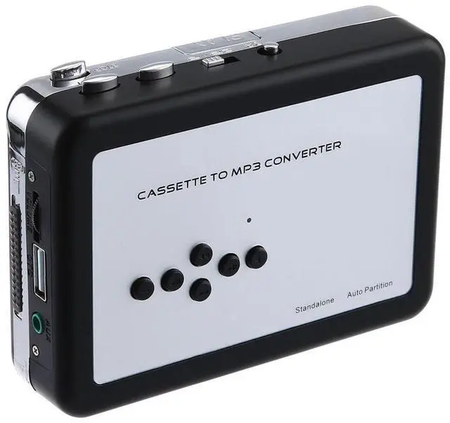 Convert audio music cassette tape to MP3 format without computer needed Capture and convert your old tape to MP3 format via USB drive , while checking your recorded file easily with playback function Work as cassette player, and also can perfectly play your audio music tape via 3.5mm headphone or 3.5mm AUX jack Auto record 2-Side music tracks to USB drive from the cassette, which is powered by USB port or 2X AA batteries.