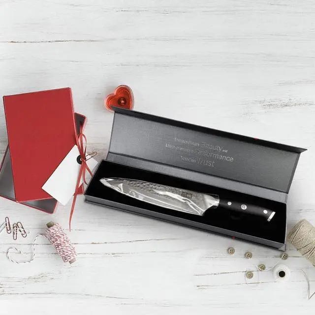 The shape and center of gravity of the Chef knife will affect the grip of the knife. The balanced design of the high-class kitchen knife allows every user to instantly feel the light blade, comfortable grip and unparalleled sharpness.