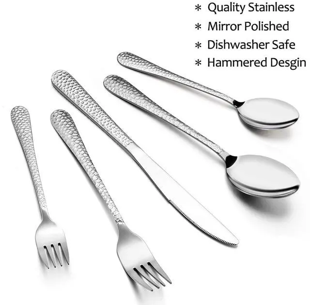 Unique hammered design on each handle that complements most any décor, Stylish and practical flatware elevates your dining experience.