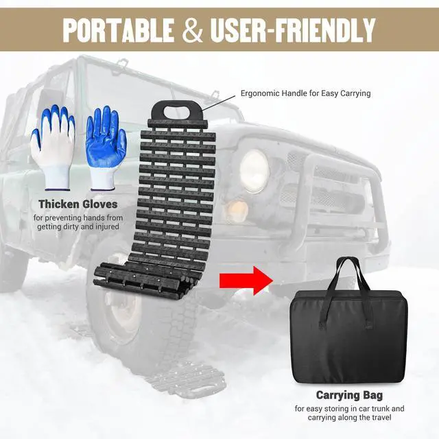 - Strong Grasping Strength - Equipped with metal studs on the bottom to offer a stronger grasping strength between the mat and the ground while being compared with recovery traction boards and tire ladders, ideal for preventing your vehicle tires from spinning on snow, ice or sand