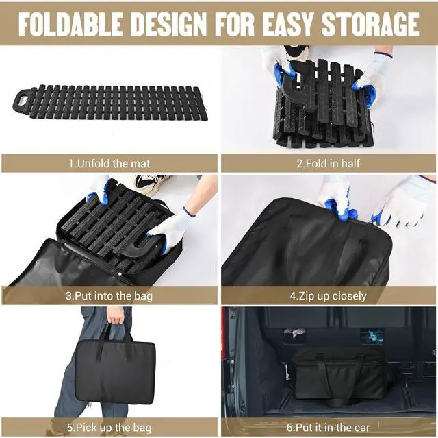 - Portable & User-friendly - Foldable design for easily rolling up the mat when not in use, comes with a carrying bag for storing in the car trunk to save space and easy carrying along the travel; Includes a pair of gloves for keeping your hands from getting dirty, which can be cleaned for reusing