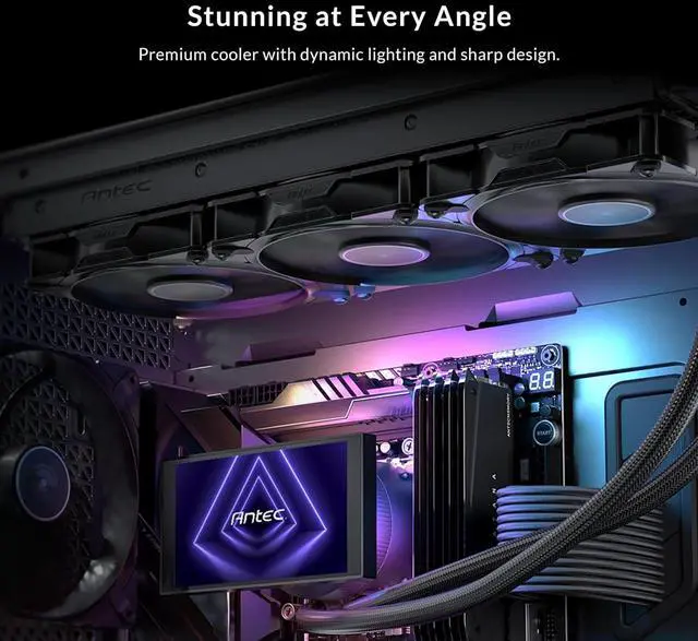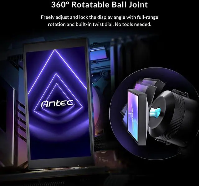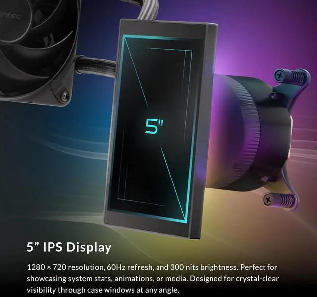 Customizable IPS LCD Screen Features a vivid 5" IPS display with 1280x720 resolution and 300 nits brightness. Fully customizable via Antec software to show real-time CPU/GPU temperatures, GIFs, or personalized images.