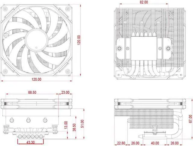 Material: 6×6mm heatpipe+Copper Base+Aluminum Fin