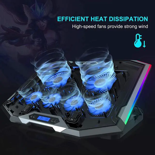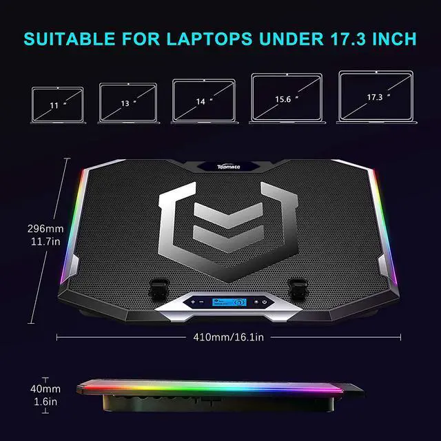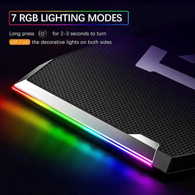 There are extended RGB light bars on both sides. After the laptop cooling pad is powered on, it can distribute cool RGB lighting effect. Contains 7 kinds of lighting special efficacy, you can choose color breathing light or monochrome breathing light mode according to your personal preferences.