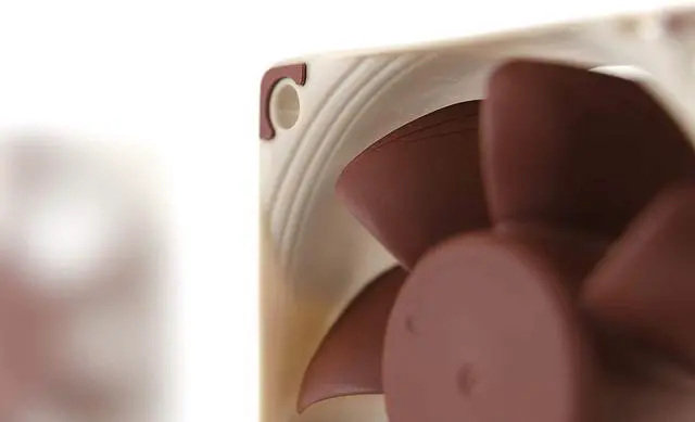 The NF-A6x25 impeller features suction side Flow Acceleration Channels. By speeding up the airflow at the crucial outer blade regions, this measure reduces suction side flow separation and thus leads to better efficiency and lower vortex noise.