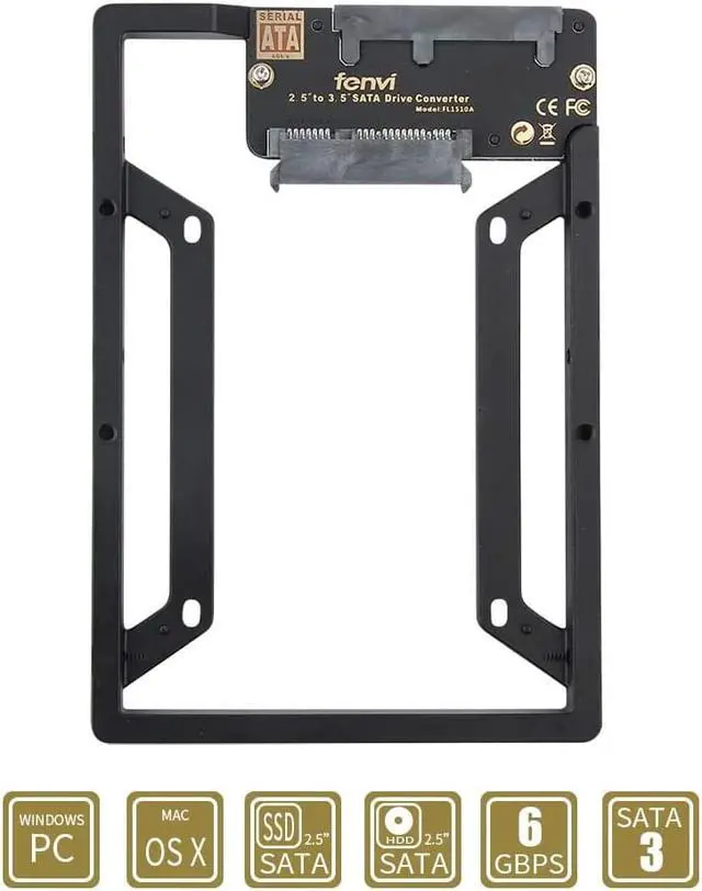 Install ANY size 2.5" SATA hard drive or SSD in a 3.5" SATA drive bay ssd mounting bracket, Use anywhere you would install a 3.5" SATA drive Includes compatibility with backplane trays such as those found in Apple Mac Pro models Backward compatible with SATA 2.0 Revision (3Gb/s) and 1.0 Revision ( 1.5G b/s) drivesThe adaptadrive supports 1.5G b/s and 3.0G b/s drives, so existing notebook hard drives can be utilized for extra storage; or a high performance '3G' SSD Because the AdaptaDrive is built from aluminum and features an open design for maximum drive cooling air flow, power users and gamers seeking maximum drive speed can now easily add the latest high performance '6G' SSDsIncludes compatibility with backplane trays such as those found in Apple Mac Pro models Open design allows for full air flow for proper drive cooling Convert 2.5" SATA hard drive or SSD to a 3.5" SATA drive bay for all 2011 iMacs, 27" iMac (2012 - 2017), Late 2009 - 2010 iMacs, 2006 - early 2009 iMacsExample 2012-2017 iMac 2009-2010 MAC PRO 2017 iMac 27" 27" Late 2015 iMac iMac 27" Late 2015 late 2015 27" iMac late 2015 iMac late 2015 iMac iMac 2013 Late 2012 27" iMac imac 2012 Imac 27?? late 2012 2012 iMac 2012 mac pro Mid 2011 27" iMac 2011 iMac 2011 27" iMac Mid 2011 IMac 2010 Mac Pro 5.1 Mid 2010 iMac Mid-2010 iMac 2010 Mac Pro 2010 MacPro 2010 iMac macpro1, 1 (Mac Pro 2006) and macpro5, 1 (Mac Pro 2010) early 2009 iMac 2009 iMac 27" 21.5 iMac late 2009 Mac Pro late 2009
