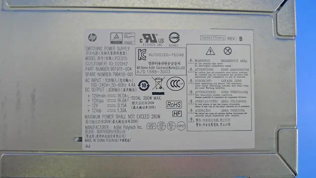 HP 796418-001 Power Supply - Rated At 280W Output, Standard Energy Efficient, 12Vdc Output