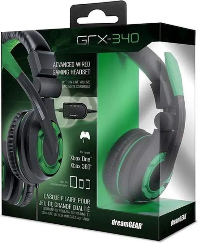The dreamGEAR DGXB1-6615 GRX-340 Gaming Headset for Xbox One is the gamer\'s choice when performance and versatility are needed. 40 mm drivers deliver explosive game sounds. Not playing alone? Advanced circuitry in the microphone ensures a consistently clear chat experience. Extra padded cushions won\'t fatigue your ears during long game sessions. GRX-340 also works with your mobile/audio device.. 40 mm drivers deliver superior sound. In-line volume/gaming/chat/mute controls. High-performance microphone with advanced circuitry. Soft, padded cushions for maximum comfort. Older Xbox One controllers require Microsoft headset adapter (sold separately).