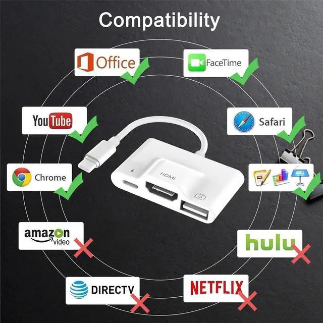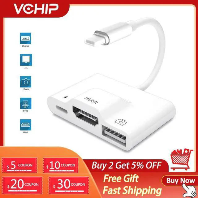 VCHIP adaptateur de câble 4K vers HDMI, pour iPhone, ipad, projecteur, adaptateur AV numérique, lecteur de carte USB, câble OTG