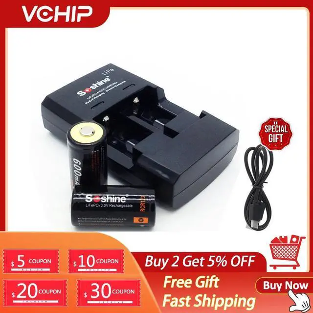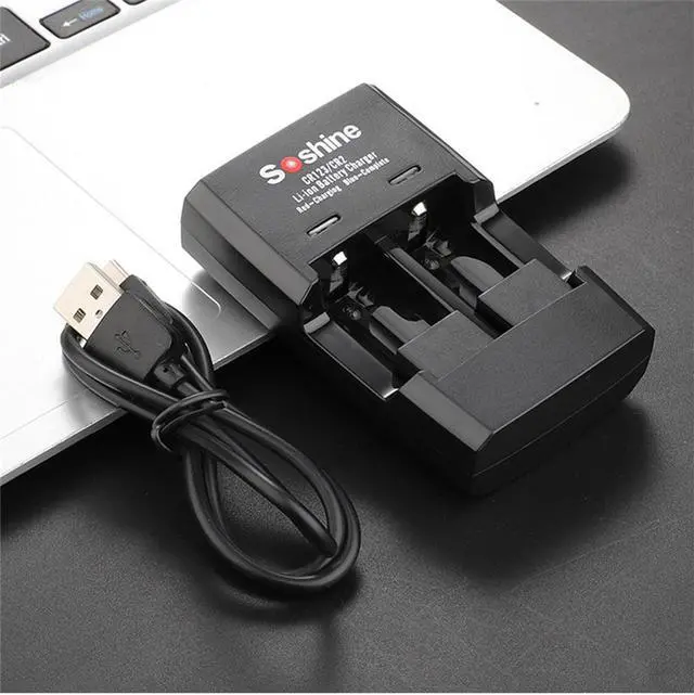 Soshine 16340 CR123 chargeur de batterie pour CR2 15266 14250 LiFePO4 chargeur de batterie 3.2V chargeur d'entrée USB à double fente