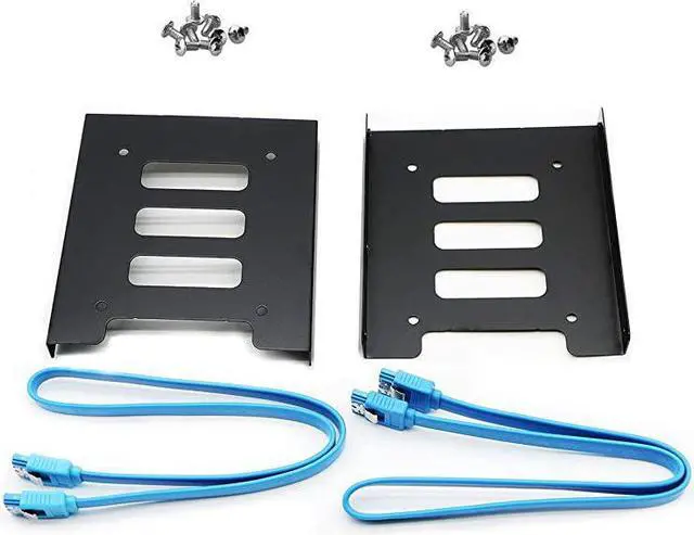 2 Pack 25 to 35 SSD HDD Hard Disk Drive Bays Holder Metal Mounting Bracket Adapter for PC Bracket + Blue Sata III Cables