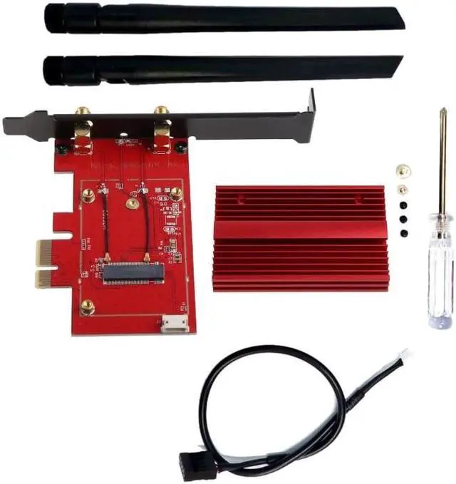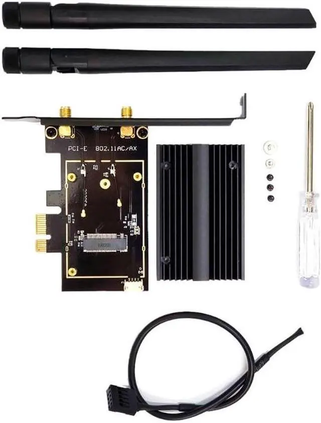 Adapter card*1 Heat sink*1 6db antenna*2 Bluetooth cable*1 Tool bag*1 (You can choose half-height gear according to your needs