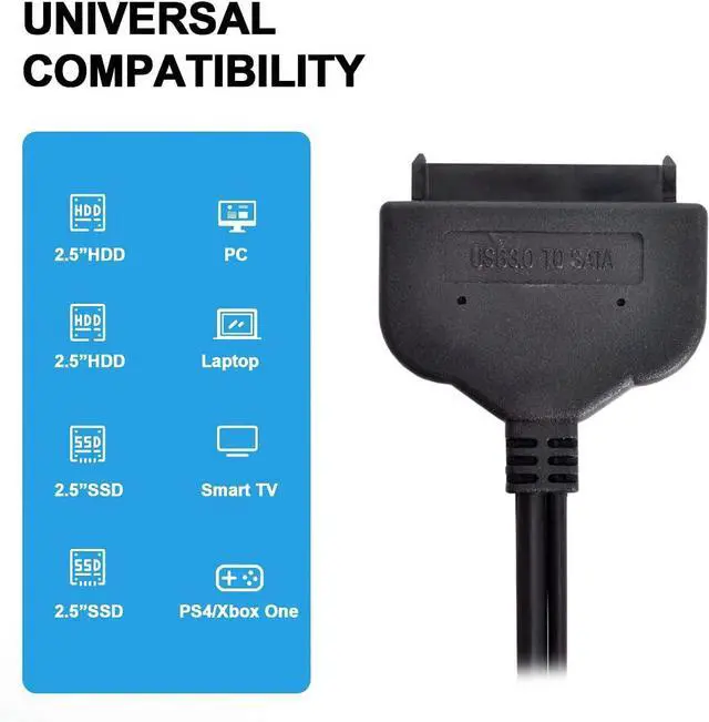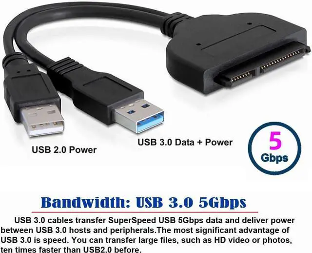 CY SATA to USB 3.0 Adapter Cable with Extra 5V Power 6Gbps Support 2.5inch External SSD HDD Hard Drive 22 Pin Sata III