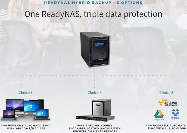 • CLOUD BACKUP - to Amazon AWS, Google Drive, Dropbox or fast block-level replication to another ReadyNAS