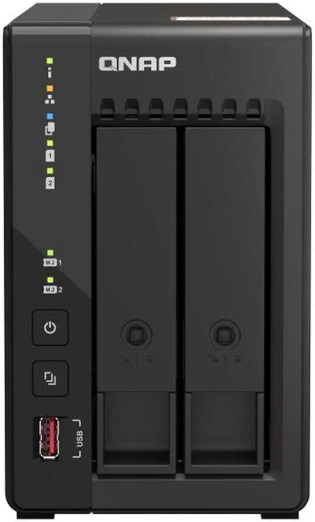 LED indicators: HDD 1-2, Status, LAN, USB port, M. 2 port