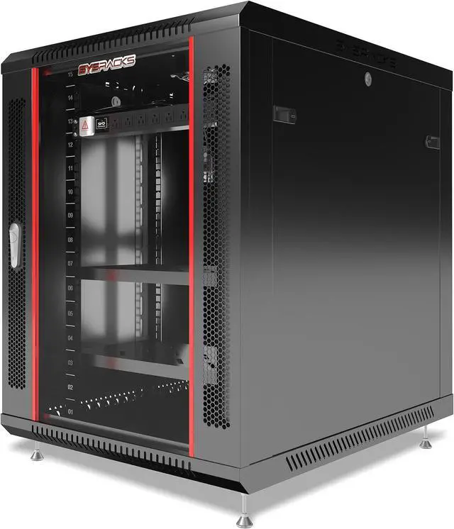 Sysracks 15U 35 Inch Depth Fully Locking Server Rack Cabinet on wheels. Fits 19 inch Standard Server Equipment. The Cabinet comes with generous accessories kit: Cooling Fan (440m3/h), Casters with "Brake" option, 8-Socket PDU, Shelf ( 21.5" ), Dust-Tight Cable Entries, 20 pcs Cage type Bolts/Nuts hardware and more. Nicely designed sturdy cabinet is the best fit to any office/home environment. Keeps server equipment cool, secure and easy accessible during maintenance.