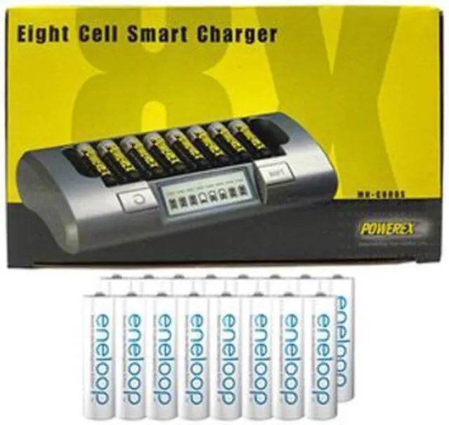 Powerex MH-C800S Eight Slot Smart Charger & 16 AA NiMH Panasonic (Sanyo) Eneloop Rechargeable Batteries (2000 mAh)