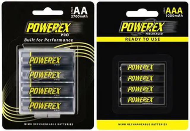 • 12 x AA (2700 mAh) + 12 x AAA (1000 mAh) NiMH Powerex Rechargeable Batteries Combo