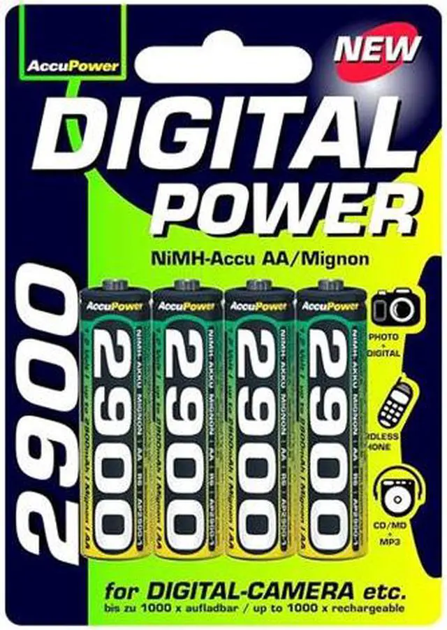 • AA AccuPower NiMH 2900 mAh Batteries (4 Card)
