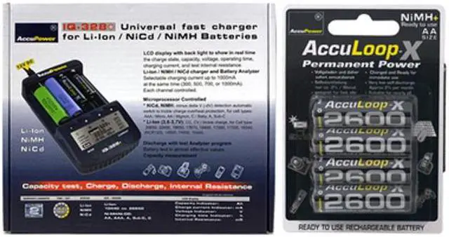 1-2 batteries: (Charging Channel) 1 and 4) up to 1800mAh