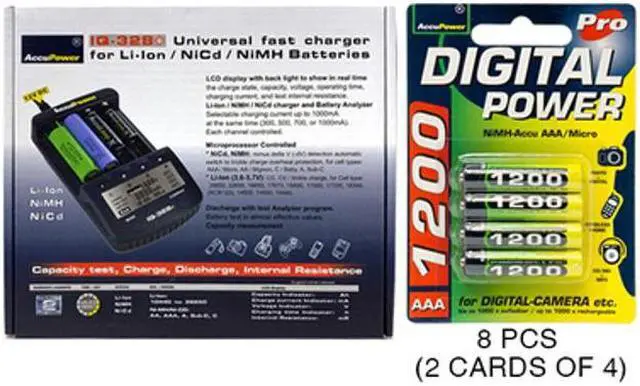 1-2 batteries: (Charging Channel) 1 and 4) up to 1800mAh