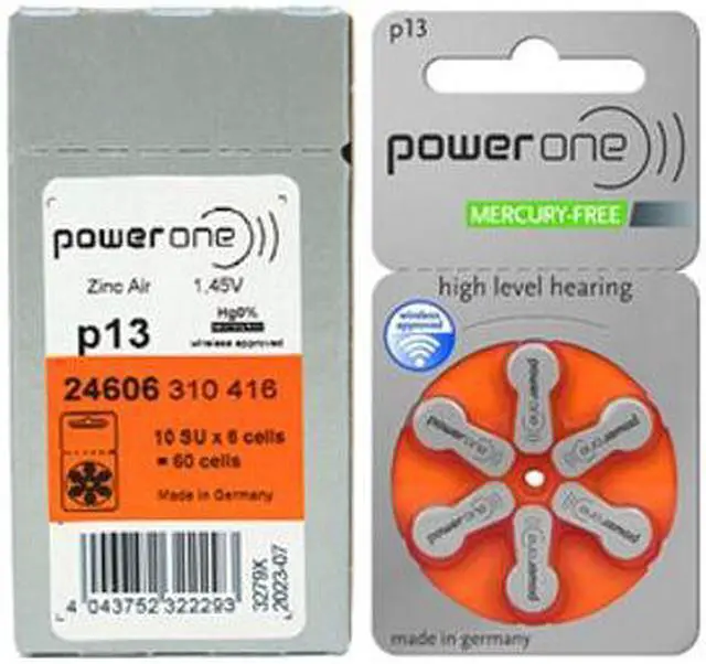 • Size P13 PowerOne Hearing Aid Batteries (60pcs - 1 Box)