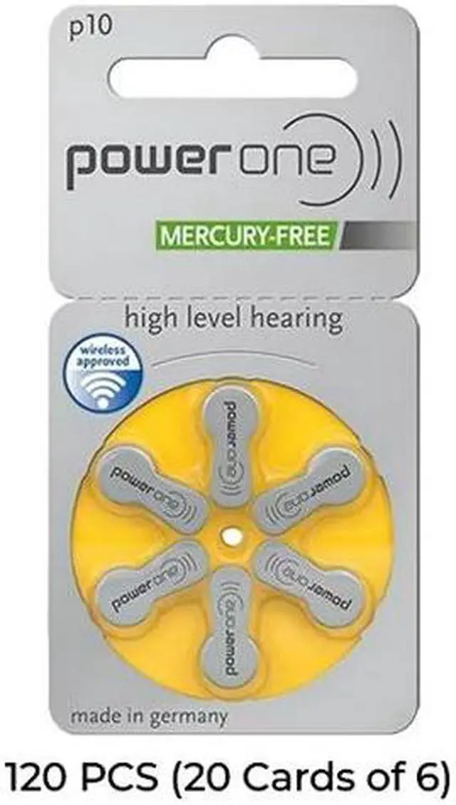 120-Pack Size p10 PowerOne Hearing Aid Batteries (20 Cards of 6)