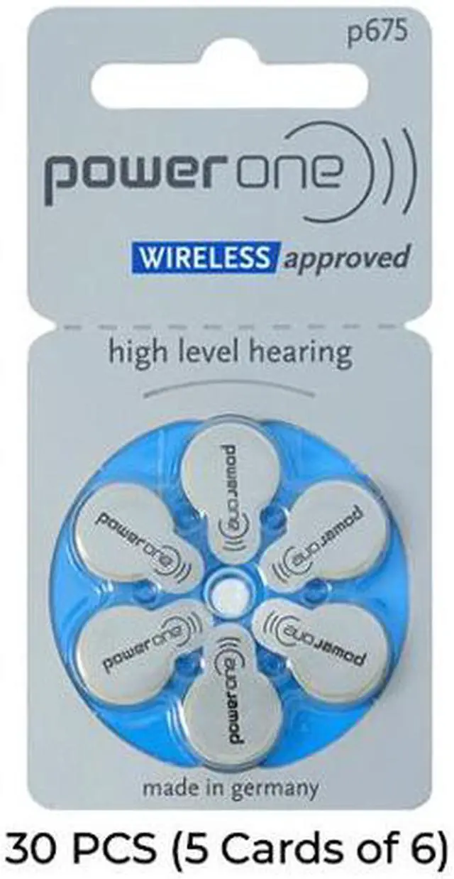 30-Pack Size p675 PowerOne Hearing Aid Batteries (5 Cards of 6)