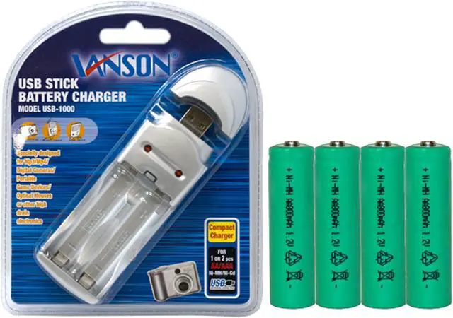 AA / AAA USB Battery Charger + 4 AA (800 mAh) NiMH Batteries
