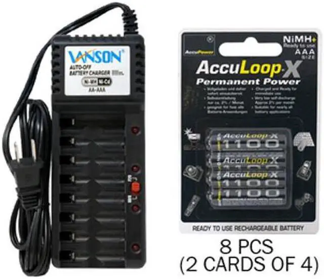 Recharge Ni-MH/Ni-Cd batteries 2, 4, 6, or 8 pcs of AA, AAA at a time. (Charge in pairs)