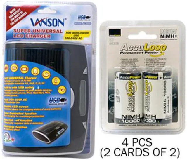 Recharges batteries in single or group - with 4 individual charging channels for AA/AAA/C/D batteries and 2 individual channels for 9V batteries.