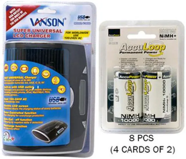 Recharges batteries in single or group - with 4 individual charging channels for AA/AAA/C/D batteries and 2 individual channels for 9V batteries.