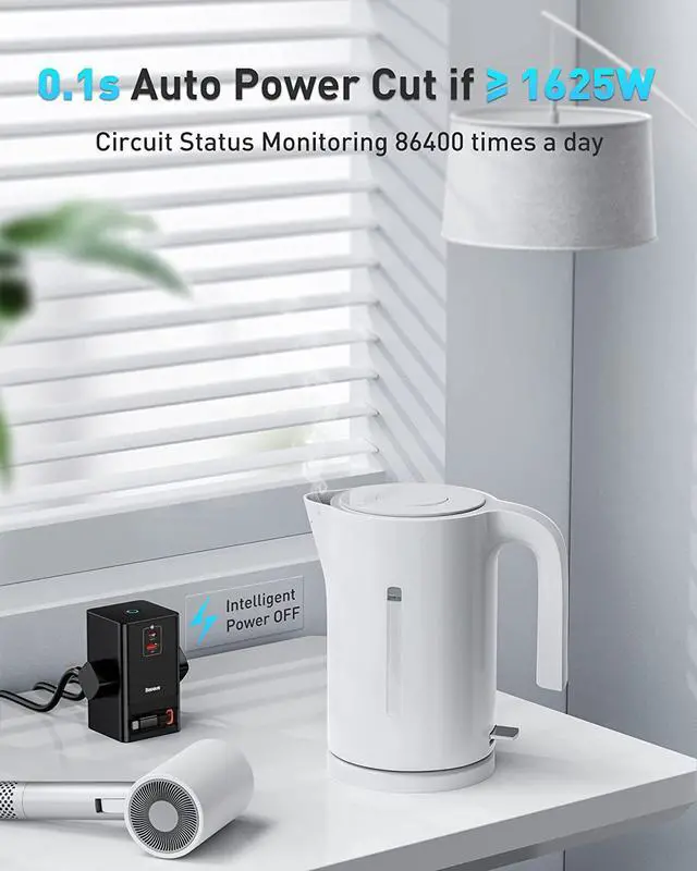 Advanced Digital Circuit Protection: 1200J surge protection looking after your devices all-day-long and BDIP tech monitors circuit status 86400 times a day then instantly cuts off the power in 0.1 s when a power spike or overloading (>1625W) is detected, and the halo LED will flash fast