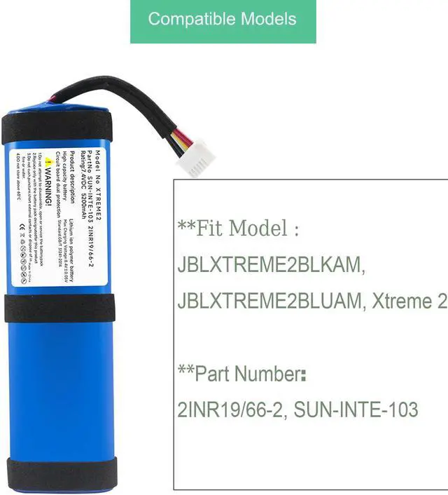 • 4.Compatible Models :for JBL Xtreme 2 XTREME2BLKAM XTREME2BLUAM 2INR19 66-2 SUN-INTE-103
