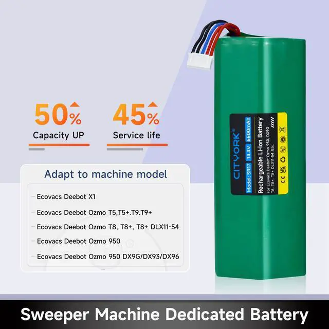 3. Fully compatible with Ecovacs Deebot T5 T8 T8+ T9 T9+ Deebot Ozmo 950 T10 T9 DX65, DX93, DX96 X1 X1 Omni X1 Turbo X1 Plus DBX11-11/21 DLX11-21/61 201-1913-4201 S10-LI-144-5200.