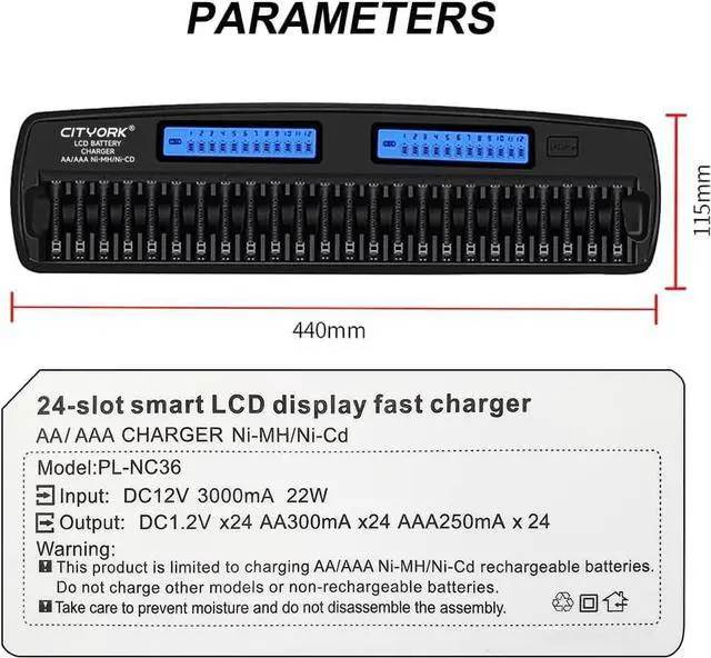 -Applicable battery type: AA/AAA NiMH/NiCd rechargeable batteries