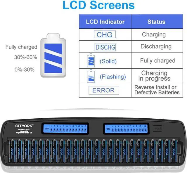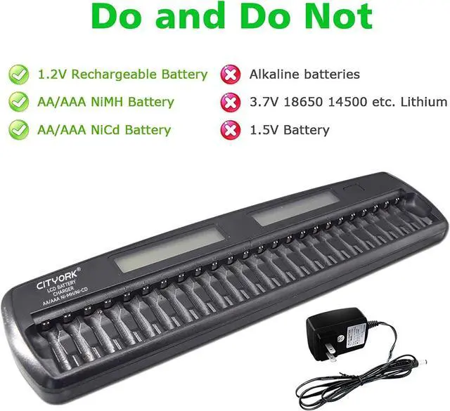 -Chargers 1 to 24 Pack AA or AAA batteries at the same time