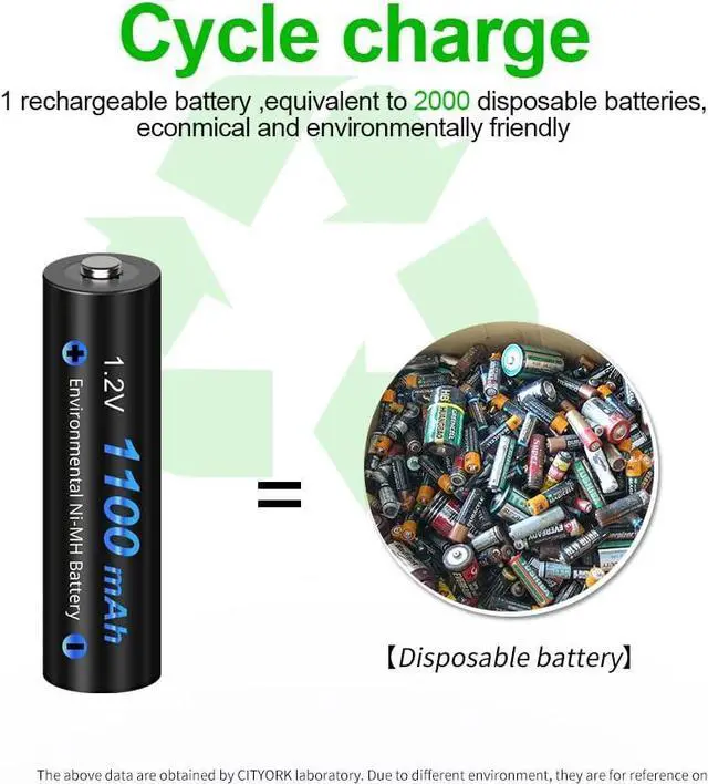 • Safety and eco-friendly: AAA 1100mAh Ni-MH Batteries can be charged up to 1200 times; No pollution to the environment benefits from the Ni-MH cell, more affordable than thousands of alkaline batteries; Ni-MH battery environmental protection material can reduce heavy metal pollution , The first step to protect the earth is to use Ni-MH batteries.