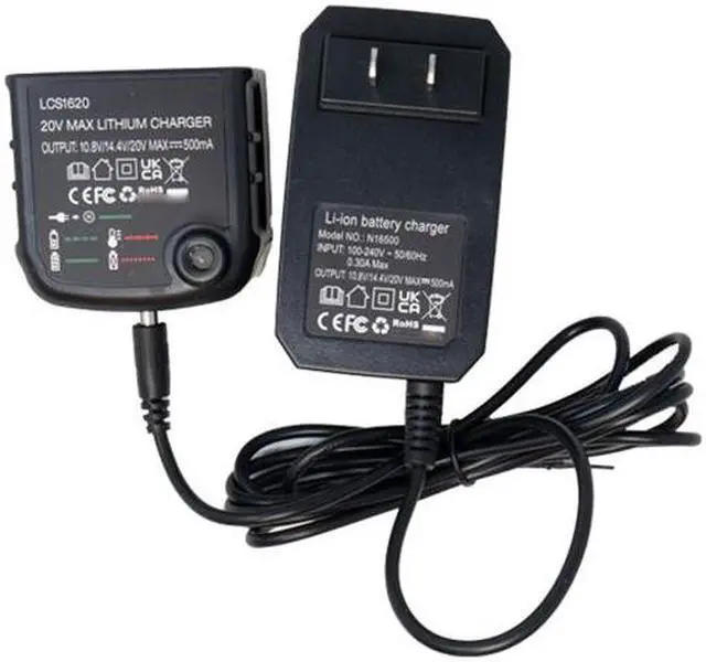 Brand: Black & Decker Input: 100 ~ 240 V - 50/60Hz 0.30A Max Output: 10.8V / 14.4V /20V Max - 500mA Compatible Batteries: Black and decker 12V and 20V lithium ion batteries: LBXR20 LBXR20-OPE LB20 LBX20 LBX4020 LB2X4020 LBXR2020-OPE LB2X3020-OPE.