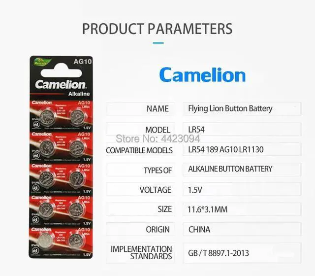 2pcs Camelion Battery Cell 1.5V AG10 LR1130 Alkaline Button Battery AG10 389 LR54 SR54 SR1130W 189 LR1130 Button Batteries