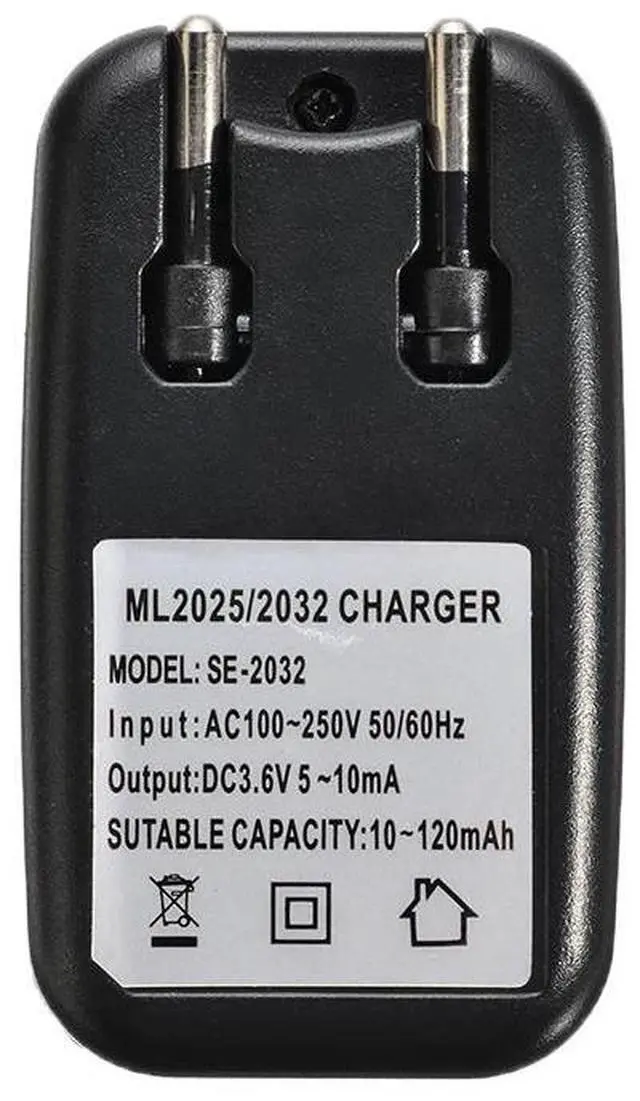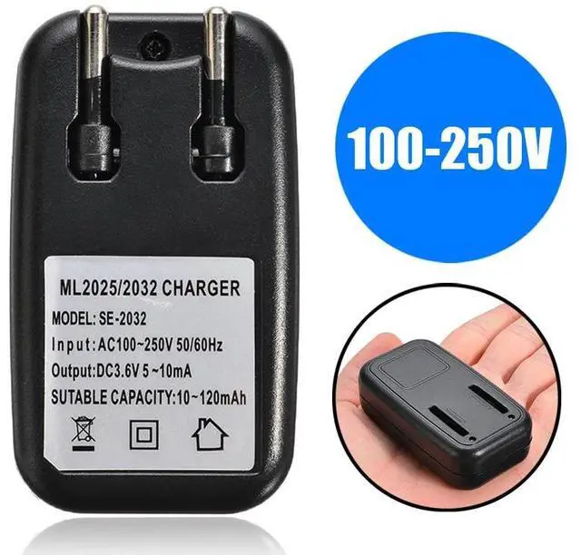 AC100-250V Coin Button Betteries Charger Black Cell Battery Travel Chargers For LIR2032 2025 EU Plug