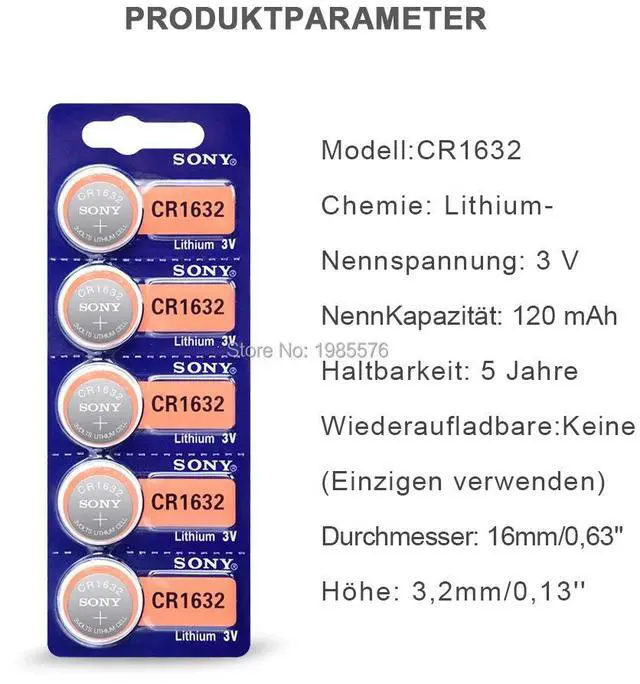 10PCS For Sony CR1632 Button Battery Lithium Coin Cell Batteries 3V LM1632 BR1632 ECR1632 CR 1632 For Electronic Watch Toy