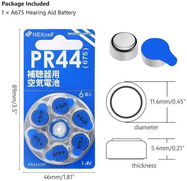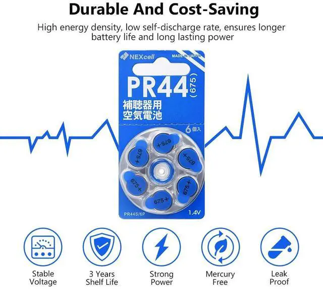6 Pcs 1.4V A675 PR44 Zinc Air Hearing Aid Battery Button Coin Batteires 675 V675 P675 DA675 PR675H PR675P PR44 For Hearing Aid