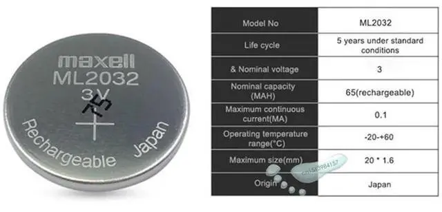 1pc Maxell ML2032 3V Rechargeable lithium battery button cell button batteries (ML2032)